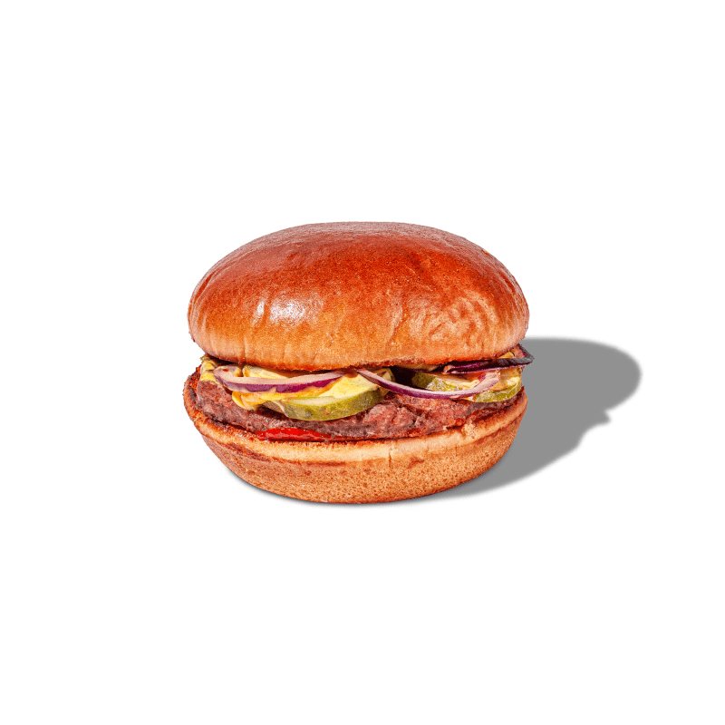 Булочка, котлета из говядины, айсберг, маринованые огурчики, красный лук, соус бургер, фирменый соус BBQ