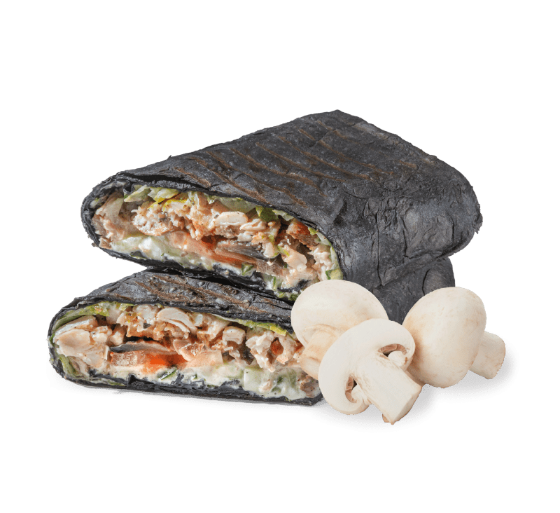Обжаренная курочка, айсберг, огурчики, помидоры, жареные шампиньоны, фирменный белый соус, лаваш.